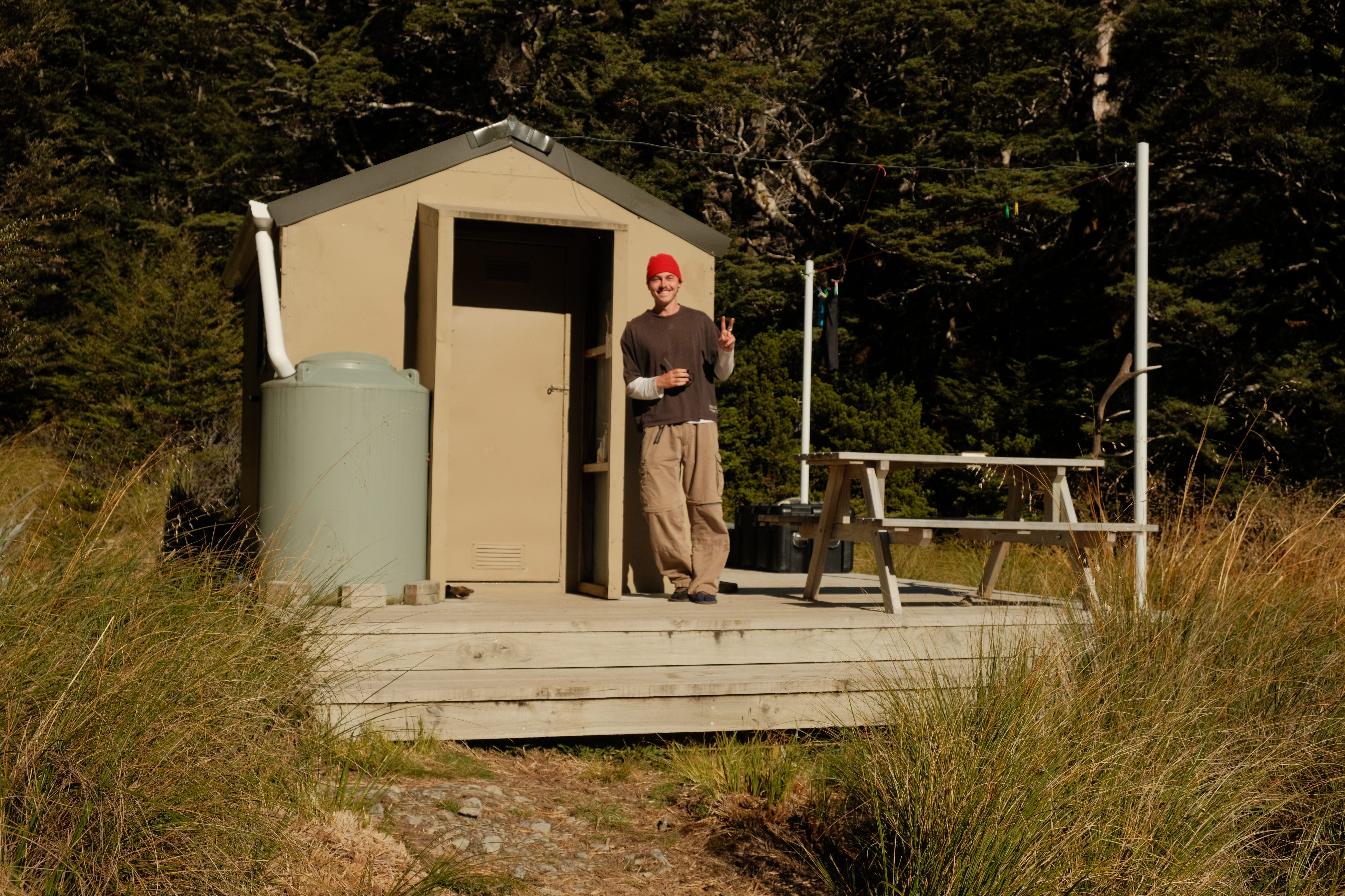 In the war room, Janet ‘Pots’ Newell and Erin ‘Skip’ Drummond toyed with the triggers of the drills, whilst Leah ‘Leah’ Harvey reloaded backpacks with Vespex. I was ushered into the corridor. I would not be partaking. I had been posted to Blue Lake (Rotomairewhenua) to act as Hut Warden for the next eight days.